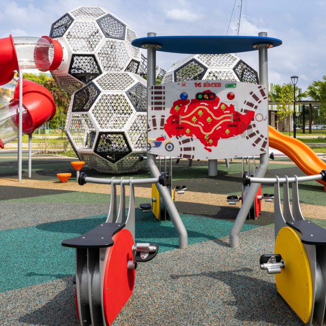 Every element within the development pays homage to the world of sports. From the iconic Basketball Dome and Football Arena to play structures shaped like badminton shuttlecocks, pool balls, and tennis racquets, the area transforms active play into a visual and physical experience. Bright colours, sport-themed installations, and interactive features create a vibrant landscape that sparks curiosity and encourages play for all ages.